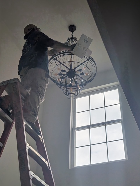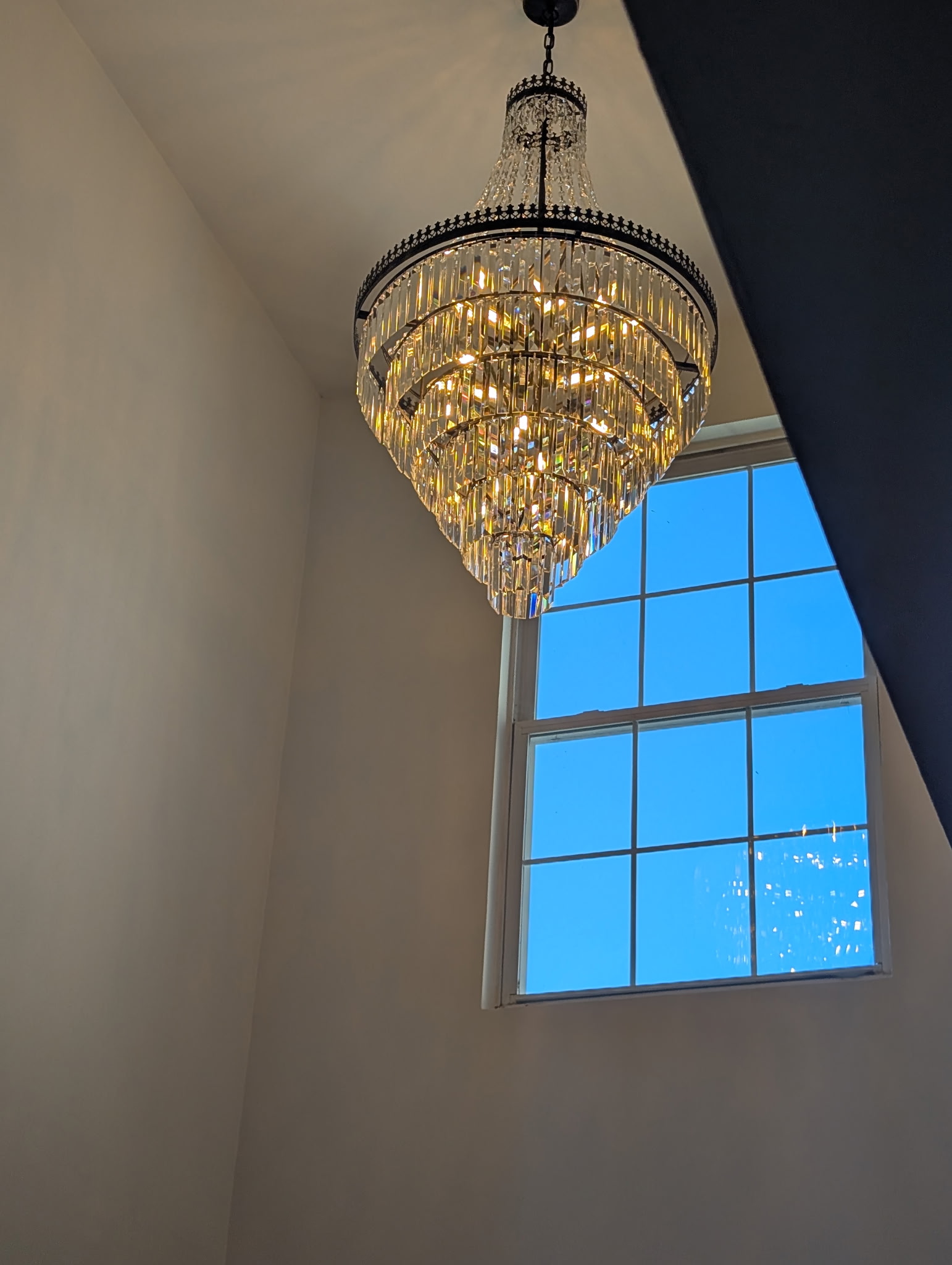 At We Do Electric, we recently completed an elegant chandelier installation in the foyer of a beautiful home in Holmdel, NJ. This stunning fixture adds both charm and sophistication to the space, creating a warm and inviting atmosphere.